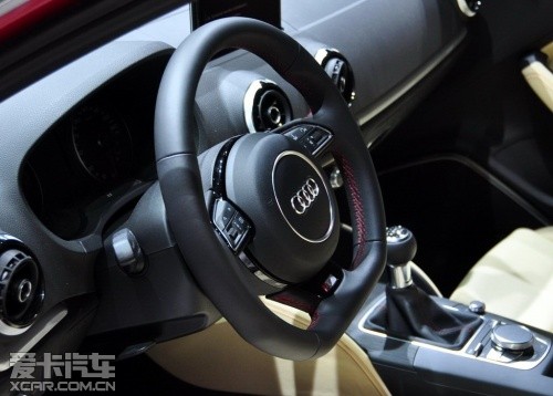 內(nèi)飾方面:奧迪全新一代A3的做工更加精致,造型設(shè)計(jì)也得到大幅度改進(jìn),其中內(nèi)飾帶按鍵的方向盤由真皮材質(zhì)包裹,此外空調(diào)排風(fēng)口等多處細(xì)節(jié)都有類似鍍鉻的邊框作為點(diǎn)綴,檔次感得到升級。