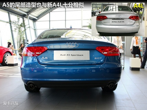 如果不仔細看,你將很難把它和新A4L區(qū)分開,它的車頭部造型幾乎與A4L完全相同,車身尾部也僅僅是尾燈與A4L略微不同。如果不是尾部的A5字樣標識,很多人都可能會“看花眼”。事實上,奧迪A5 Sportback的車身尺寸也與歐版奧迪A4較為接近。