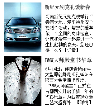 導(dǎo)語映象網(wǎng)汽車頻道,為了給廣大愛車人士提供更多的車市信息,創(chuàng)辦了車市行情欄目,欄目提供中原車市各大4S店的打折信息、活動(dòng)等信息,為您購(gòu)車、選車、試車做向?qū)А?/FONT>