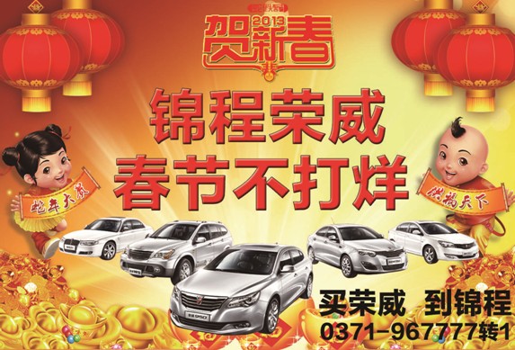 新春佳節(jié)到來之際,小編從河南錦程汽車銷售服務(wù)有限公司了解到,河南錦程榮威春節(jié)不打烊,和您一起過共度佳節(jié)。春節(jié)期間2月9日(除夕)-16日(初七),凡購(gòu)車客戶均可獲得錦程送出的新春大禮包——年貨。錦程榮威推出了易享貸,更有超實(shí)惠兩年半零利息上汽金融政策,助您開車過年。更多優(yōu)惠車型請(qǐng)咨詢:0371--967777轉(zhuǎn)1.
