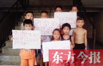 昨晚,已經(jīng)返回當(dāng)?shù)氐内w會勇傳來圖片,畫面上,幾個孩子舉起寫著“感謝東方今報(bào)的叔叔阿姨”的紙片。字寫得歪歪扭扭,但,看到的人都覺得很溫暖。DF