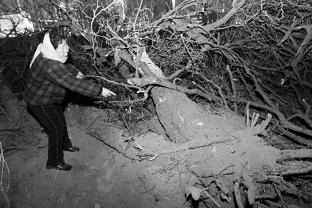 被毀的棗樹林位于新鄭市好想你棗業(yè)公司對面的新港大道路東。昨晚,記者趕到現(xiàn)場,看到公路旁的楊樹已經(jīng)東倒西歪,穿過楊樹林走不遠,便是被毀的棗樹林。有的棗樹齊根折斷,有的被連根拔起,地上留下大大小小的土坑,一片狼藉。
