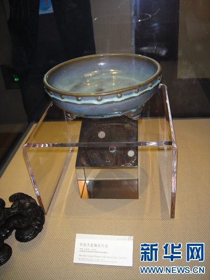 鈞官窯遺址博物館位于禹州市鈞官窯路北段,是該市籌資1.2億元,經(jīng)過三年時(shí)間精心打造而成的全國唯一一座鈞瓷專題博物館。走進(jìn)宋鈞官窯遺址博物館,一件件造型典雅、端莊古樸、釉色瑩潤(rùn)、五彩繽紛吸引了記者的眼球,館內(nèi)共有1500多件熠熠生輝的鈞瓷藏品, 在二樓鈞官窯瓷器展示廳,一件鈞窯天藍(lán)釉鼓釘洗的瓷器吸引了很多人關(guān)注,據(jù)館長(zhǎng)介紹,這件瓷器所有權(quán)不屬于博物館,而是他們從國外借來的。過去由于多種原因,很多精美的瓷器都流失國外,有些回流到了國內(nèi),而有些只能暫時(shí)借過來,才能讓更多人一睹它的風(fēng)采。