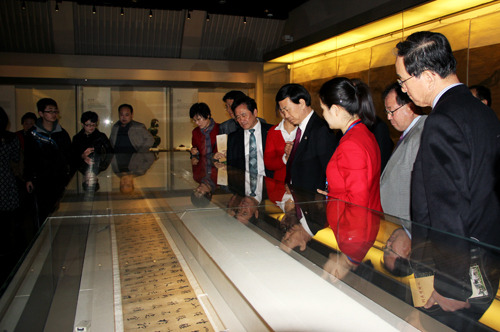 韓國文化交流團(tuán)成員認(rèn)真觀看展品