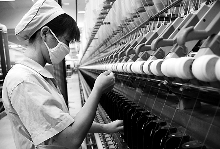 3月26日,位于鄧州市產(chǎn)業(yè)集聚區(qū)內(nèi)的永泰棉紡股份有限公司員工正在趕制訂單產(chǎn)品。 盛志國 攝