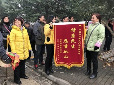 11月29日,三門峽市銀堤漫步小區(qū)數(shù)十位業(yè)主敲鑼打鼓冒雨將兩面寫有“情系民生 恩重如山”、“心系百姓 為民排憂”的錦旗送到三門峽市委和市政府,感謝新的領(lǐng)導(dǎo)班子為他們千余戶業(yè)主解決了存在五年的住房難問題。