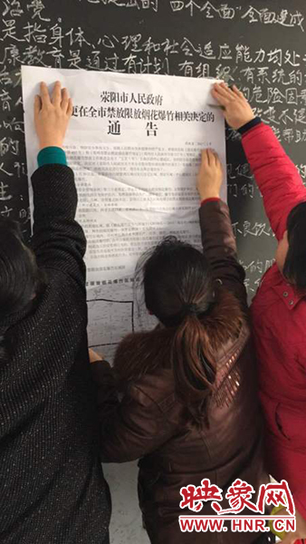 映象網(wǎng)訊(記者 王文凱 通訊員 李文利 趙露瀅)新春佳節(jié)將至,為減少環(huán)境污染,切實保障轄區(qū)人民群眾身體健康和財產(chǎn)安全,預防安全事故發(fā)生,滎陽市索河辦堅決落實上級禁限放煙花爆竹有關會議精神,將禁限放煙花爆竹宣傳工作作為當前重中之重,采取五項措施,全力以赴做好禁限放宣傳工作。