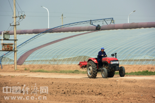 中鶴集團6000畝特色果蔬種植基地果蔬大棚上巨幅卷簾自動卷起