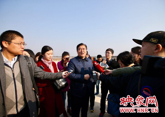 鄭州市通用航空管委會副主任王曉接受記者采訪。映象網(wǎng)記者 段晉哲/攝