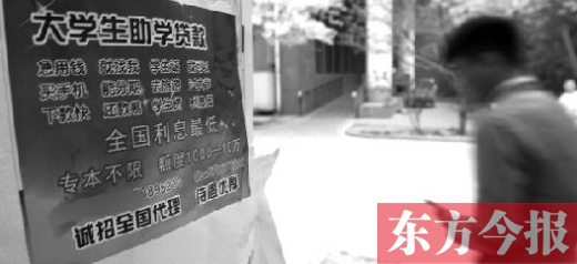 “親愛的同學(xué)們,還在為每個月超支的生活費擔(dān)心嗎?還在為沒錢買‘愛瘋’著急嗎?還在為沒錢沒法‘說走就走’失落嗎?別發(fā)愁,看這里,無抵押貸款,金額500到5000元,六個月內(nèi)還清,絕無壓力?!?/p>