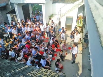 農(nóng)家院子里擠滿了人