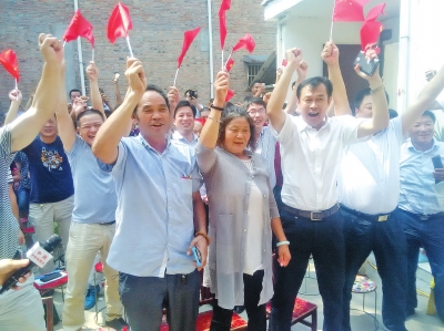 鄉(xiāng)親們?nèi)挤疟夼?,慶祝女排奪冠。