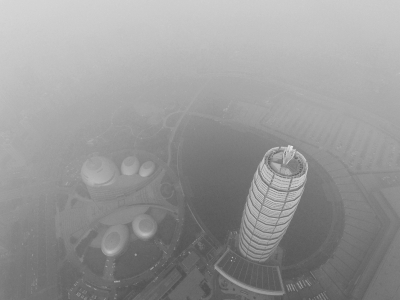 昨日(12月18日)中午,記者利用無人機(jī)爬升到最高升限500米仍舊沒能突破霧霾層,鏡頭中的“大玉米”籠罩在一片混沌當(dāng)中。