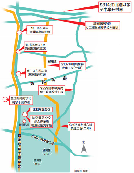 ●2009年9月,G107鄭州段第二次改建。這條路緊臨京港澳高速,北接107輔道申莊互通式立交,南至航空港迎賓大道,于2012年4月正式交付使用。也就是人們常說(shuō)的新107國(guó)道,即現(xiàn)在的“四港聯(lián)動(dòng)大道”。