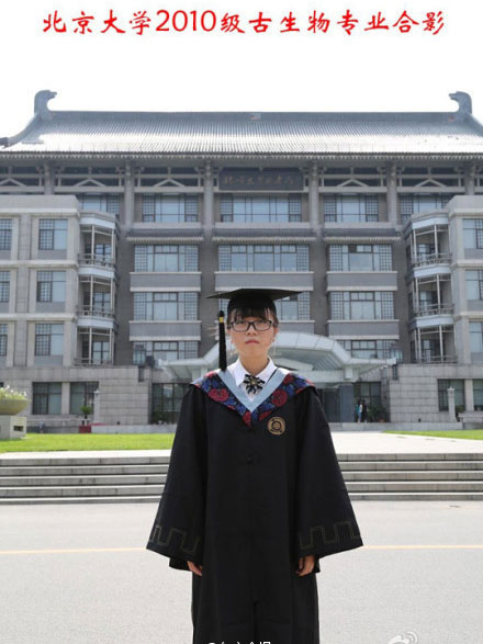 北京大學2010級古生物專業(yè)學生薛逸凡在社交網(wǎng)站上發(fā)布了張“一個人的畢業(yè)照”,據(jù)其所畢業(yè)的北大元培學院副院長盧曉東介紹,“這是全中國唯一的一個只有一名學生的專業(yè),差不多是每個年級有一個人?!膘趴岬?jīng)]有同學。。。