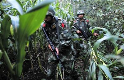 武警與特警分成了若干小組,每組約10人,分頭對(duì)青川鄉(xiāng)與沿河鎮(zhèn)的山林進(jìn)行搜查。在搜查開(kāi)始前,武警支隊(duì)的一名負(fù)責(zé)人訓(xùn)話時(shí)強(qiáng)調(diào):如遇到逃犯,首先要進(jìn)行口頭警告,接著要進(jìn)行鳴槍警告,然后才能對(duì)腿腳等次要部位進(jìn)行射擊。