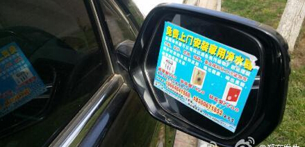 據(jù)鄭州市民劉先生報(bào)料,昨天下午兩點(diǎn)多,在鄭州市建業(yè)路建業(yè)花園小區(qū),開車的時(shí)候發(fā)現(xiàn)愛車的后視鏡被貼上了不干膠的小廣告.“尼瑪!害得我在寒風(fēng)中半個(gè)小時(shí)還沒有清干凈……”你還見過、遇到過哪些奇葩的、令人想罵人的小廣告呢?