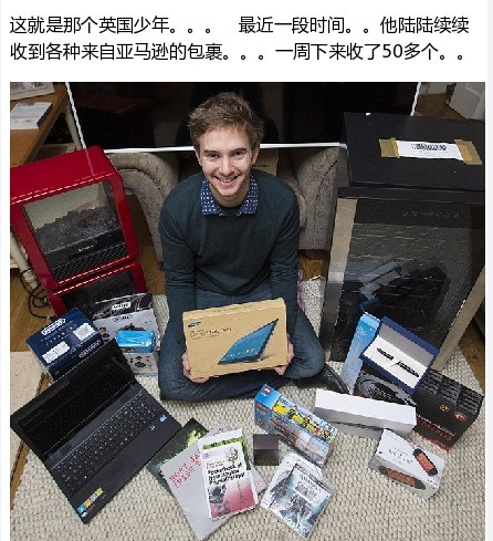 英國有個(gè)少年很煩惱。近一周他陸續(xù)收到50多個(gè)來自亞馬遜寄錯(cuò)給他的包裹。忐忑之下,他給亞馬遜的客服打了電話。亞馬遜:啊對(duì)不起,是我們弄錯(cuò)了,給你寄了那么多,給你添麻煩了。你就全部留下吧,我們不要了...有點(diǎn)爽...