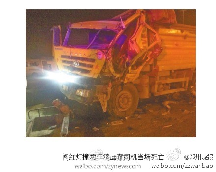 2.鄭州:渣土車凌晨闖紅燈連撞兩車 司機當(dāng)場死亡