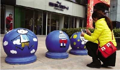 4、鄭州街頭隔離墩“穿”卡通外衣萌翻路人 網(wǎng)友點(diǎn)贊