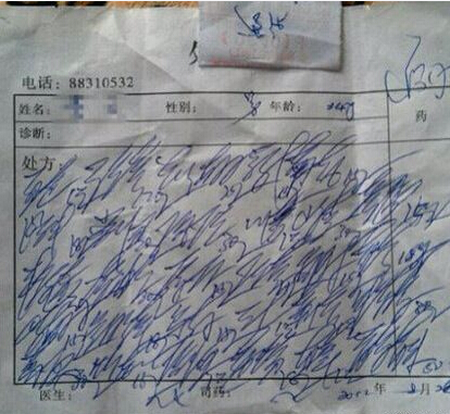 @陸心遠:其實醫(yī)生寫病例單開藥單在過去是有規(guī)定的,防止藥方外泄,故寫的比較草,還有醫(yī)生貌似以前用的都是拉丁文吧,這不是最神奇的,而是抓藥的居然都認識醫(yī)生的字,這最恐怖!