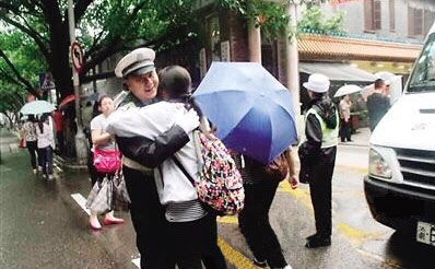 “叔叔我可以抱抱你嗎?”昨天,重慶一位“考前小緊張”的女生走進考場前,突然小跑來到執(zhí)勤民警小張面前,怯生生地“求鼓勵”。小張知道她可能需要一點鼓勵,沒有猶豫,馬上給了她一個熊抱,“叔叔祝你考出理想的成績!”