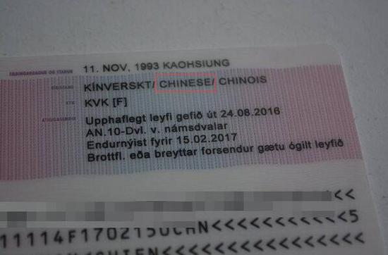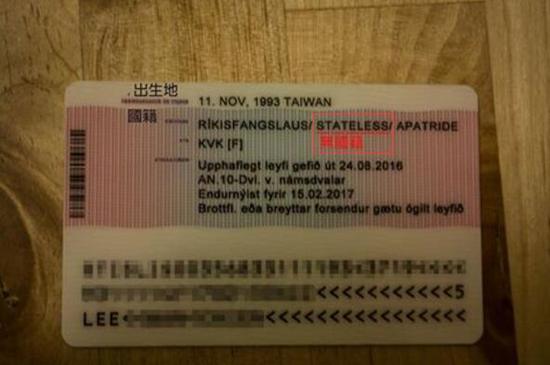 原標(biāo)題:臺(tái)灣女生不滿冰島居留證被列中國(guó)籍 結(jié)果被改為“無(wú)國(guó)籍”