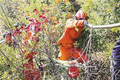 從上午9時開始,當(dāng)?shù)卮迕衽G斬棘,慢慢護送白靜波遺體下山。消防官兵也從其它地方迂回趕來,歷經(jīng)6小時才將遺體送下山。