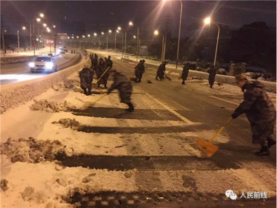 1月25日晚開始,東部戰(zhàn)區(qū)和江蘇省軍區(qū)緊急派出官兵,奔赴駐地掃雪除冰、清理道路,保障人民出行安全。