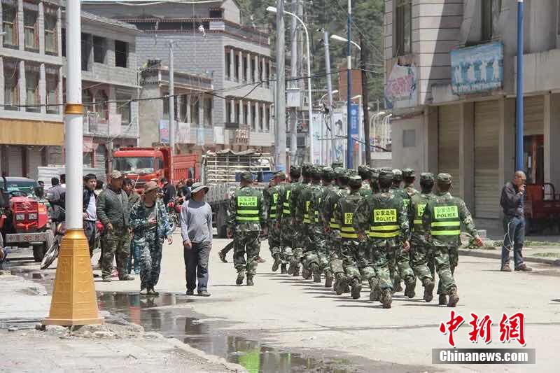5月12日下午15點(diǎn)05分,尼泊爾再次發(fā)生里氏7.5級地震,吉隆方向震感強(qiáng)烈。地震發(fā)生后,機(jī)動支隊(duì)二大隊(duì)立刻組織22人的救助小組趕赴幫興村進(jìn)行救援,挨家挨戶開展搜救,并轉(zhuǎn)移和安撫受災(zāi)群眾。在吉隆鎮(zhèn)街面擔(dān)負(fù)巡邏任務(wù)的官兵成功從救出1名受傷群眾,并及時(shí)將其送往醫(yī)療點(diǎn)進(jìn)行醫(yī)治。目前,大隊(duì)官兵正繼續(xù)對附近村莊進(jìn)行排查。中新社發(fā) 楊鴻輝 攝