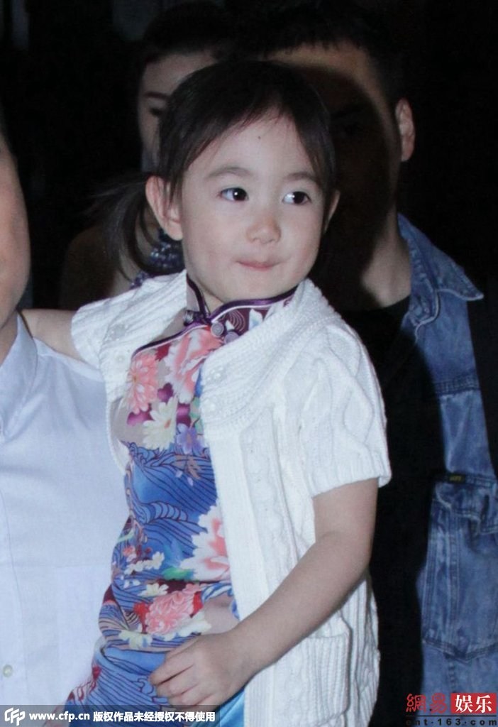 近日李小鵬抱女兒快步離開活動(dòng)現(xiàn)場(chǎng)。女兒奧莉身穿花旗袍配白色外套,還不停做表情賣萌搶鏡?! ?