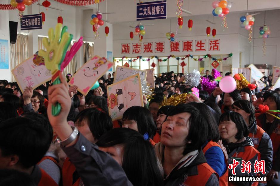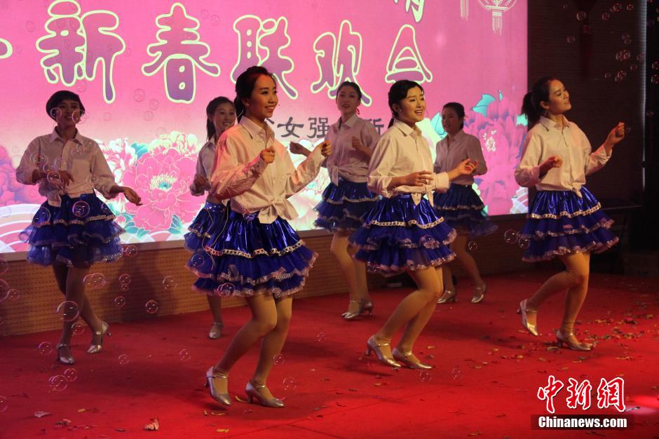 22日,適逢元宵佳節(jié),一場由民警和戒毒學員共同演繹的聯(lián)歡會在陜西省女強制隔離戒毒所舉行,通過歌舞、相聲、二人轉(zhuǎn)、小品等表演形式,鼓勵戒毒人員在新的一年,繼續(xù)增強戒毒意愿和決心,早日戒除毒癮回歸社會。圖為民警表演歌伴舞。 張一辰 攝
