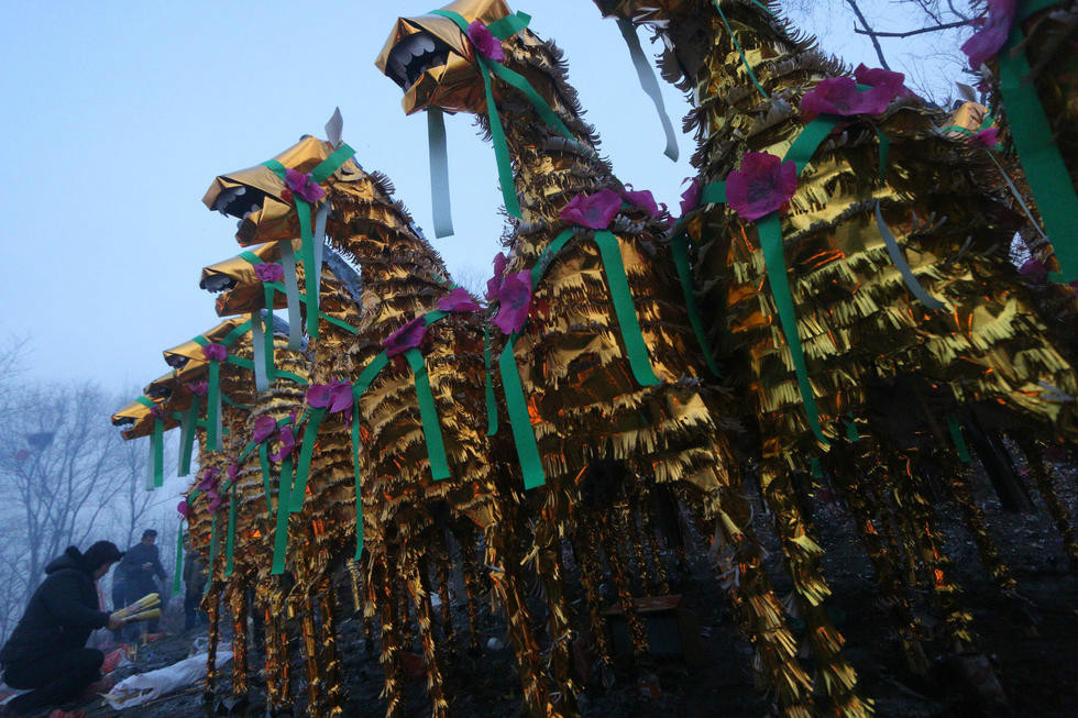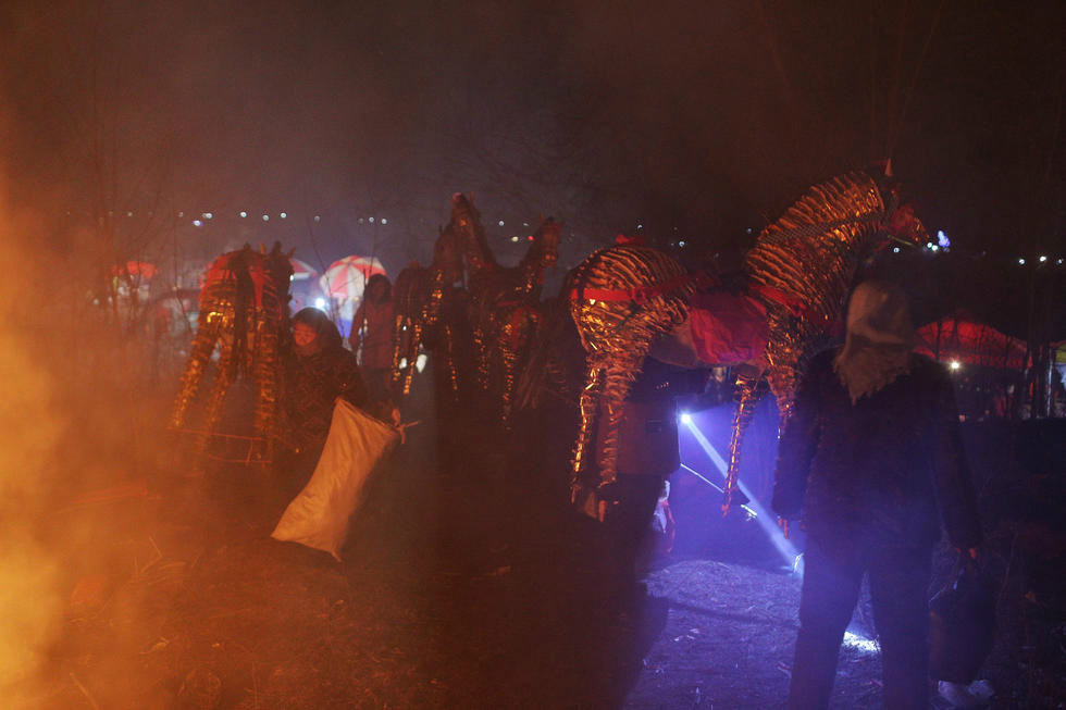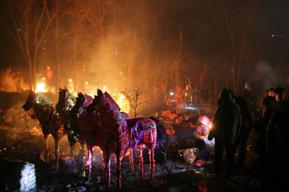 2016年2月23日凌晨,山東省濱州市惠民縣小霹靂莊,宋代古冢牛保冢上一年一度的正月十六祭祀活動正式開始,方圓百里萬余百姓陸陸續(xù)續(xù)趕來祭祀,以求風(fēng)調(diào)雨順,家和事興。多種祭祀用紙馬先后被抬上祭壇引燃,化作火龍直沖云天,數(shù)量足有數(shù)千匹之多,場面壯觀且奇異,親臨現(xiàn)場宛若置身神鬼大片,令人印象深刻。