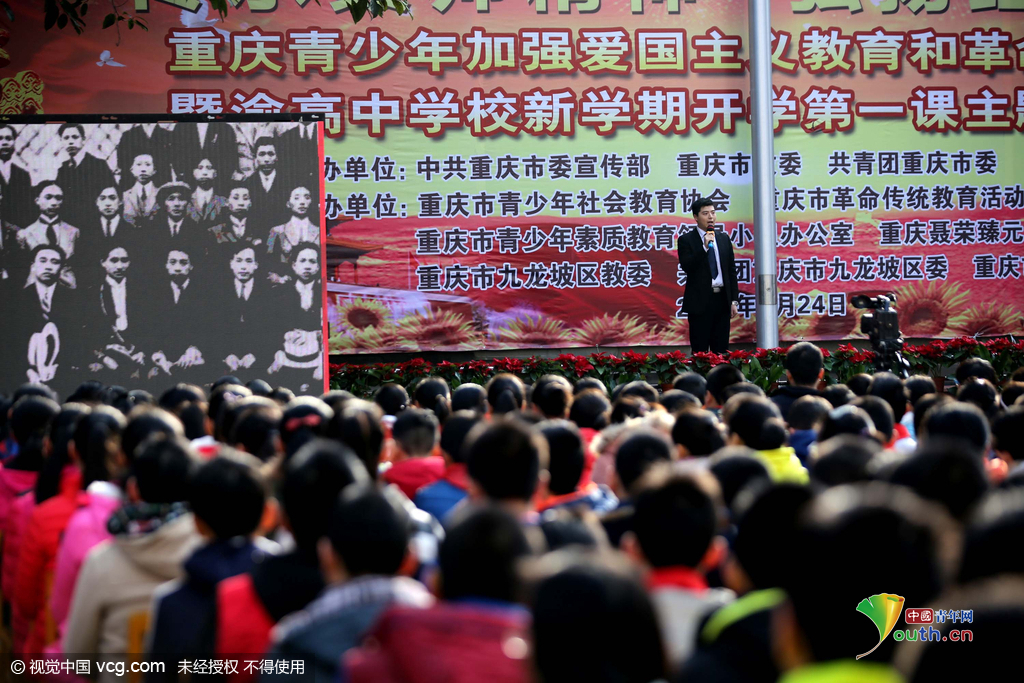 2016年02月24日,重慶,開學(xué)第一課由聶榮臻元帥陳列館報(bào)告團(tuán)成員為同學(xué)們宣講老一輩無(wú)產(chǎn)階級(jí)革命家的豐功偉績(jī)。視覺(jué)中國(guó)