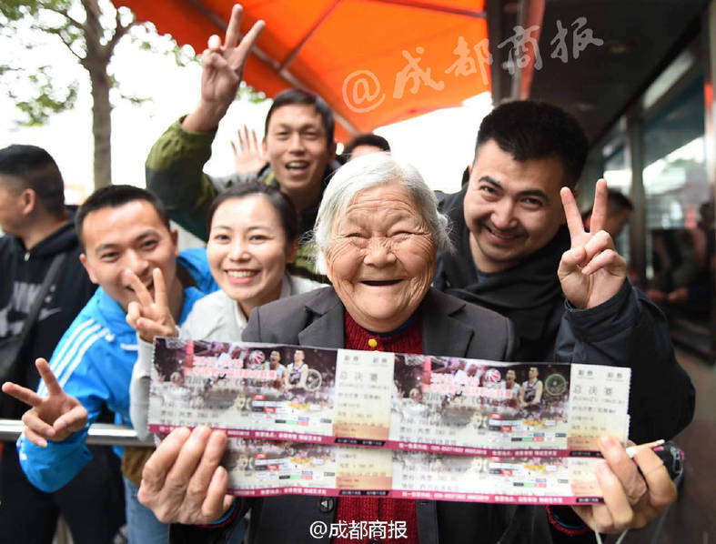 可以說,為了買到一張球票,真是要把吃奶的力氣都拿出來。然而,在一票難求的情況下,當(dāng)一位80歲高齡的老太替兒子來排隊(duì)買票時(shí),現(xiàn)場幾百名球迷卻主動讓老人插隊(duì),老人最終買到球票。 圖片來源:成都商報(bào)