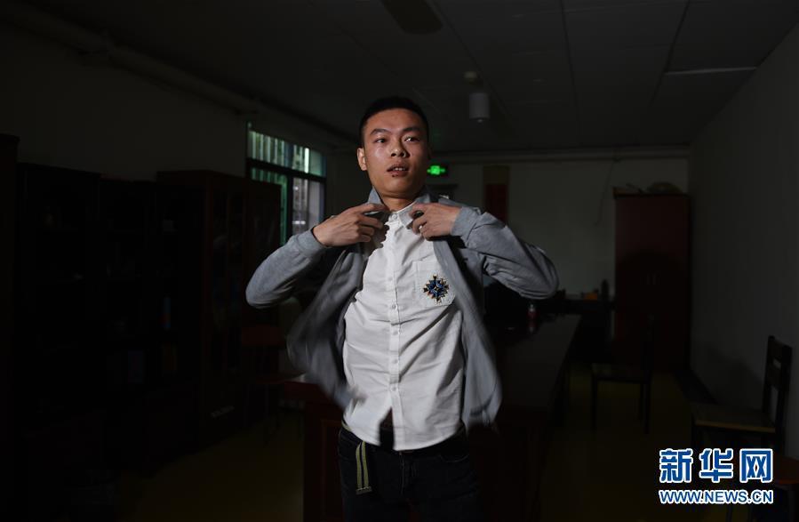 “替身”王峰來自湖南婁底,28歲的他在長沙南仁專科醫(yī)院工作。王峰在網(wǎng)上看到招募消息后,立刻跟帖自薦報名,由于年齡和身材與黃舸接近,他成了黃小勇最終選定的扮演黃舸的人選。新華社記者 李尕 攝 圖片來源:新華網(wǎng)