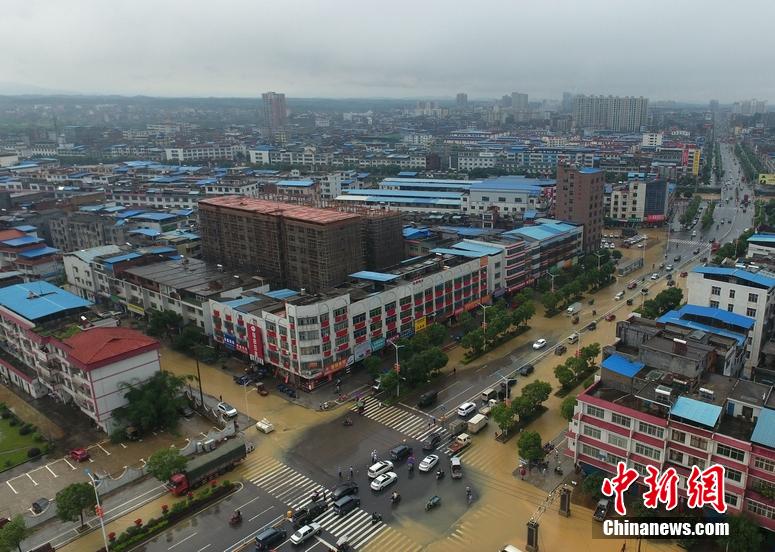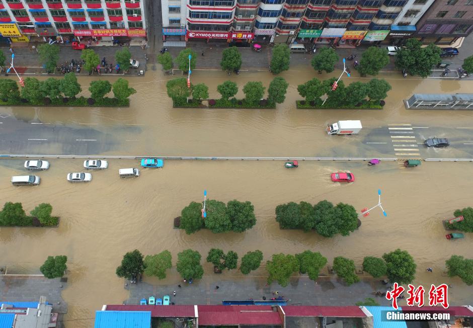 5月5日,地處湘南的永州市道縣遭遇暴風(fēng)雨襲擊,縣城內(nèi)多處低洼路段被水淹沒。當(dāng)?shù)胤姥床块T正嚴(yán)密監(jiān)控雨情、水情,確保安全度汛。 中新社發(fā) 何紅福 攝