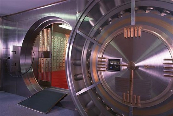 據(jù)工作人員介紹,金庫有兩扇出入的庫門,由世界上第一家生產(chǎn)金庫門的公司生產(chǎn),工作人員表示,當年美國“9.11”事件,世貿(mào)中心地下保險庫就采用了該品牌的金庫門,在大樓完全倒塌的情況下,保險庫主體結(jié)構(gòu)沒有受到過多破壞。