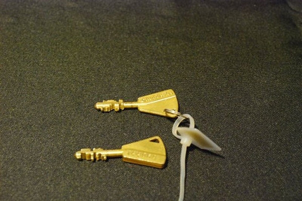 每扇保管箱的門上有兩個鑰匙孔,一把鑰匙在租戶手中,一把鑰匙在寶庫工作人員手中,需要同時插入才能打開,而且每把鑰匙都是全球唯一的,并有編號。