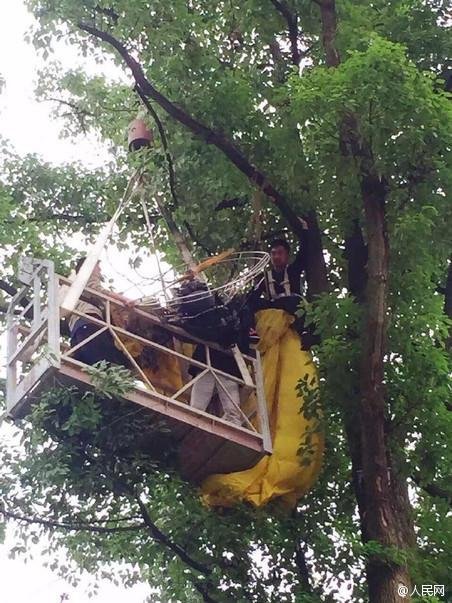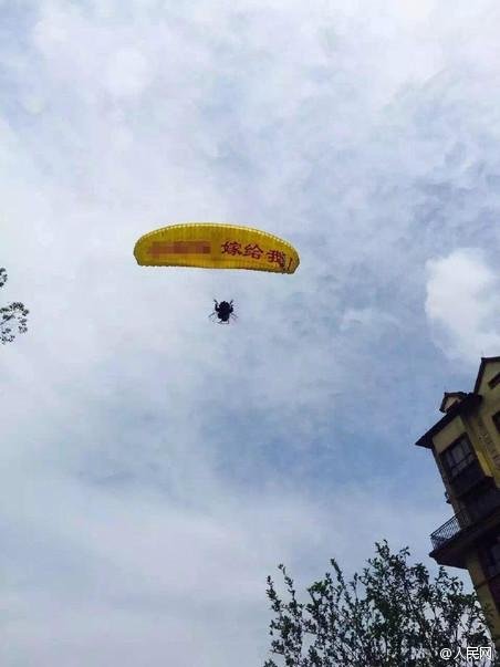 @人民網(wǎng)【悲催!男子欲滑翔求婚不想掛樹上了】21日上午,湖北宜昌一男子乘坐滑翔傘在空中向女朋友求婚。但在低空欲降落時,因一陣強風(fēng)被刮到樹上。