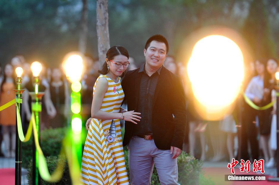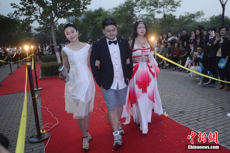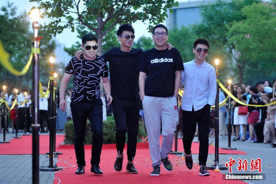 6月3日晚,山西大學(xué)美術(shù)學(xué)院畢業(yè)典禮,大學(xué)畢業(yè)生通過紅地毯走進會場,學(xué)弟學(xué)妹們夾道歡迎。當(dāng)畢業(yè)生情侶一起走秀時,引起學(xué)弟學(xué)妹們一陣尖叫。韋亮 攝