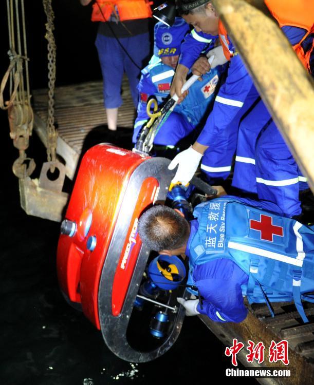 6月6日,四川廣元沉船事故救援現(xiàn)場(chǎng),參與救援的水下機(jī)器人先后兩次下水,并通過攝像頭在翻沉的“雙龍”號(hào)船內(nèi)發(fā)現(xiàn)有遇難者以及一些漂浮物品。圖為救援人員將水下機(jī)器人抬放入水。中新社記者 劉忠俊 攝