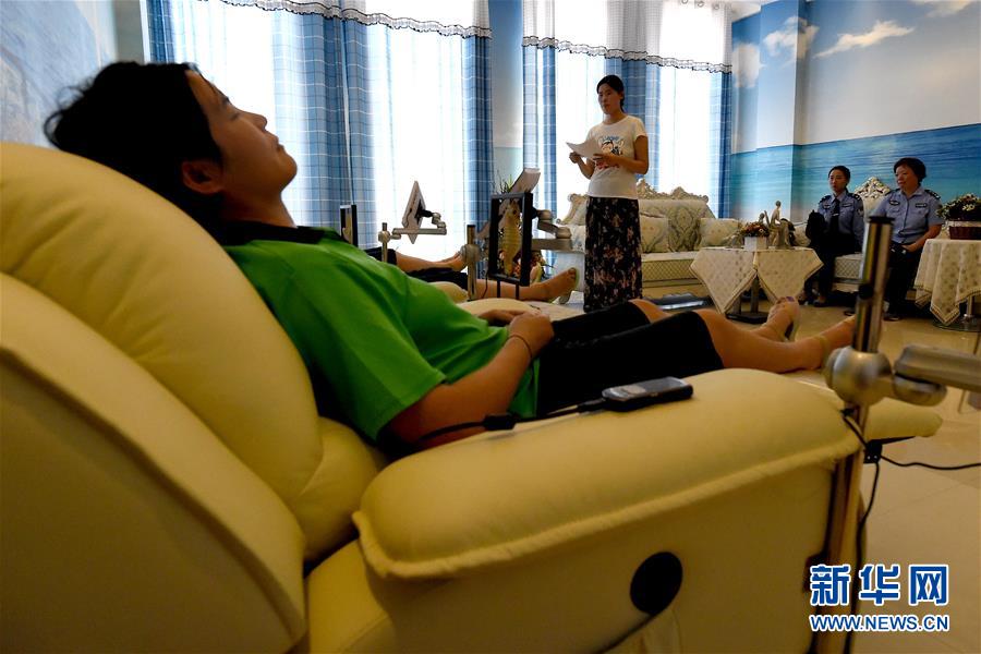 6月26日是國際禁毒日,今年的主題是“無毒青春健康生活”。在禁毒日前夕,記者走進(jìn)了河南省唯一的女子強(qiáng)制隔離戒毒所及唯一的未成年人強(qiáng)制隔離戒毒所。近年來,戒毒所注重對戒毒人員的溫情關(guān)懷救助,搭建戒毒治療綜合性平臺,努力為戒毒人員打造“溫馨之家”,設(shè)置了瑜伽室、健身室、心理咨詢室等場所,通過開展各種體育鍛煉、心理咨詢、職業(yè)技能培訓(xùn)以及社會適應(yīng)性教育等活動,幫助戒毒人員強(qiáng)化體能、修復(fù)身心損害,使他們可以盡快走出困境,融入社會。新華社記者 李安 攝
