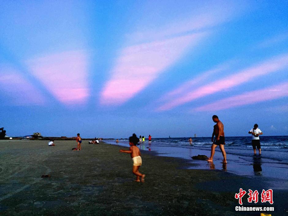 6月27日,廣西北海僑港海灘現(xiàn)晚霞奇觀。受副熱帶高壓影響,廣西連日持續(xù)高溫天氣,而高溫“燒”出的晚霞美景美不勝收,不少市民和游客趁傍晚時間趕海消暑,欣賞迷人晚霞。據(jù)廣西氣象臺預計,未來幾天高溫持續(xù),28日將進入本次高溫的最強階段。中新社記者 翟李強 攝