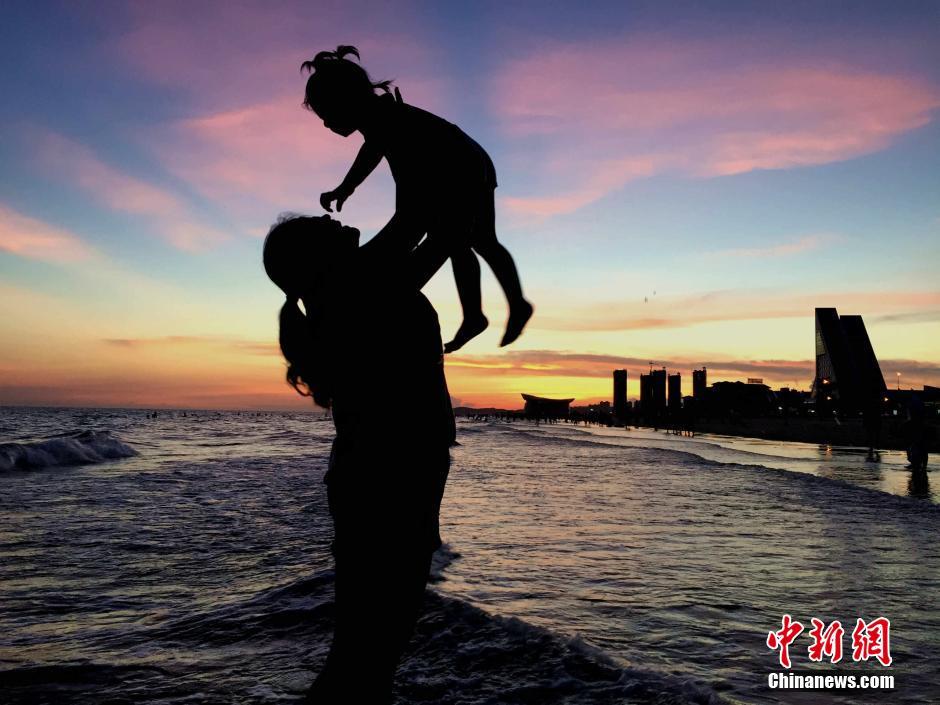 6月27日,廣西北海僑港海灘現(xiàn)晚霞奇觀。受副熱帶高壓影響,廣西連日持續(xù)高溫天氣,而高溫“燒”出的晚霞美景美不勝收,不少市民和游客趁傍晚時間趕海消暑,一并欣賞迷人晚霞。據(jù)廣西氣象臺預計,未來幾天高溫持續(xù),28日將進入本次高溫的最強階段。中新社記者 翟李強 攝