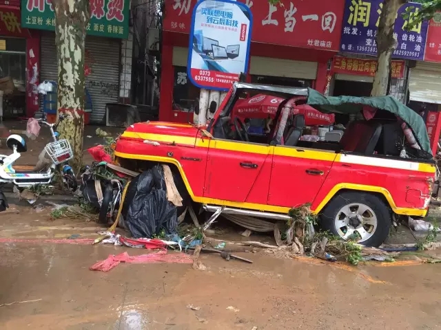 交通癱瘓,房屋坍塌,車輛受損,超市門面大量被淹,輝縣這場百年不遇的天災(zāi)對輝縣造成巨大損失。