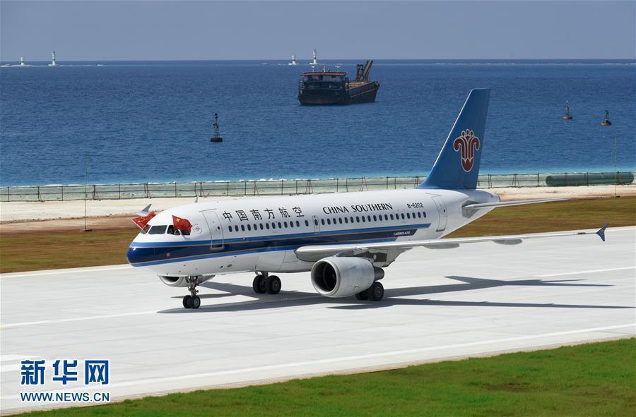 7月13日,南方航空公司的客機(jī)在美濟(jì)礁新建機(jī)場(chǎng)著陸。新華社記者 陳益宸 攝 圖片來源:新華網(wǎng)