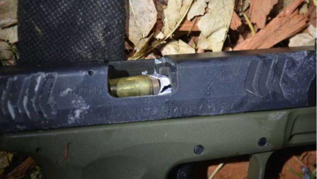 如果美國的陪審團審想問搶劫未遂犯Jahlil Meshesha “在去年冬天是否準備武裝搶劫崗杰斐遜縣副警長Jose Ramon Marquez”,那么他們只需要看一下上面武器的照片就好了。照片顯示在搶劫犯Meshesha準備開火時,副警長Marquez的子彈射入了搶劫犯的槍管中。圖為搶劫犯的手槍。警察的子彈從槍口射入嫌犯槍支,隨后卡在槍膛中,還將槍膛中的一顆子彈打變形。由于手槍彈頭多是較軟的鉛芯彈,因此有一定概率發(fā)生這種情況。