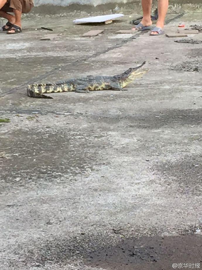 “鱷魚長約一米,身上有花斑,看著挺可怕的,還好沒有傷到人”。