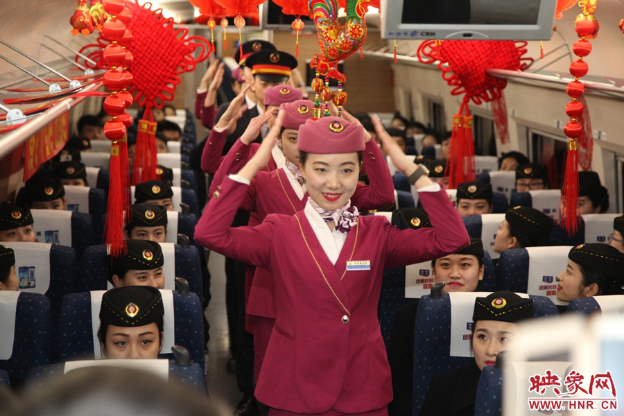 映象網(wǎng)快訊(記者 阮海峰 文/圖)1月9日,鄭州客運(yùn)段高鐵一隊(duì)組織在家休班的干部職工60余人在熱備車(chē)上,召開(kāi)“平安春運(yùn),有序春運(yùn),溫馨春運(yùn)”動(dòng)員大會(huì)。